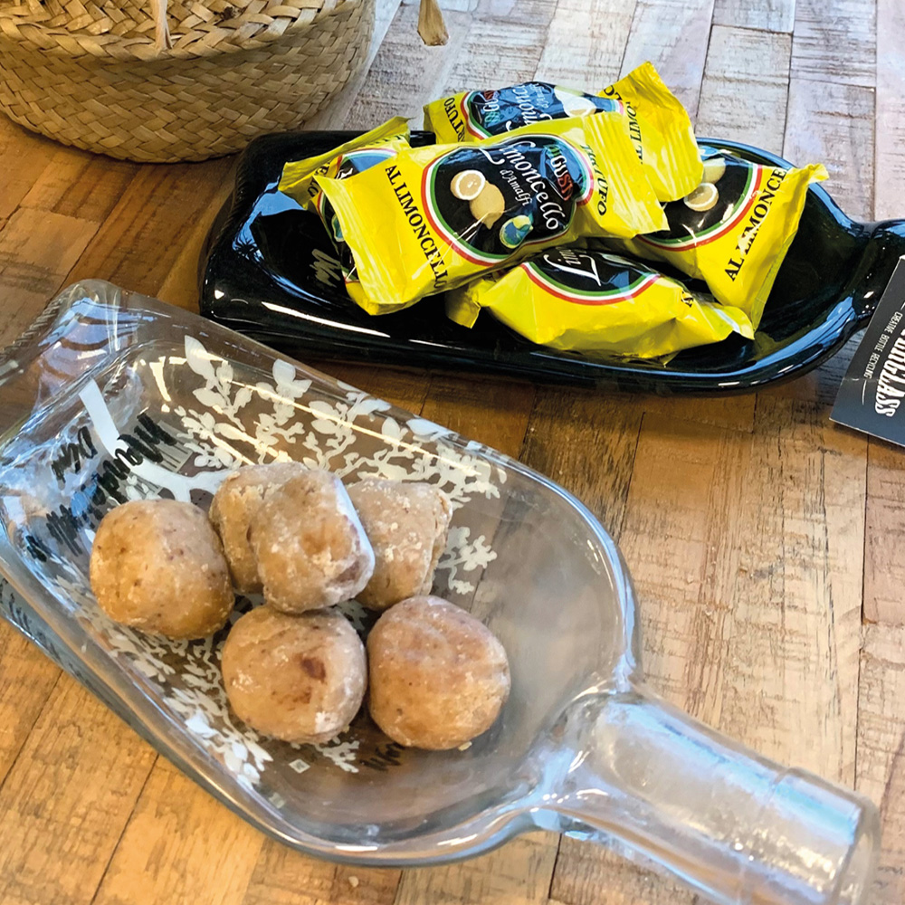 Handgemaakte limoncello I.G.P. (Amalfi) bonbons. Luxe verpakt in een doorzichtig plastic zakje met een Italiaanse strik (tricolori). Heerlijk bij de koffie en erg leuk om cadeau te geven! 100g (circa 5 stuks).